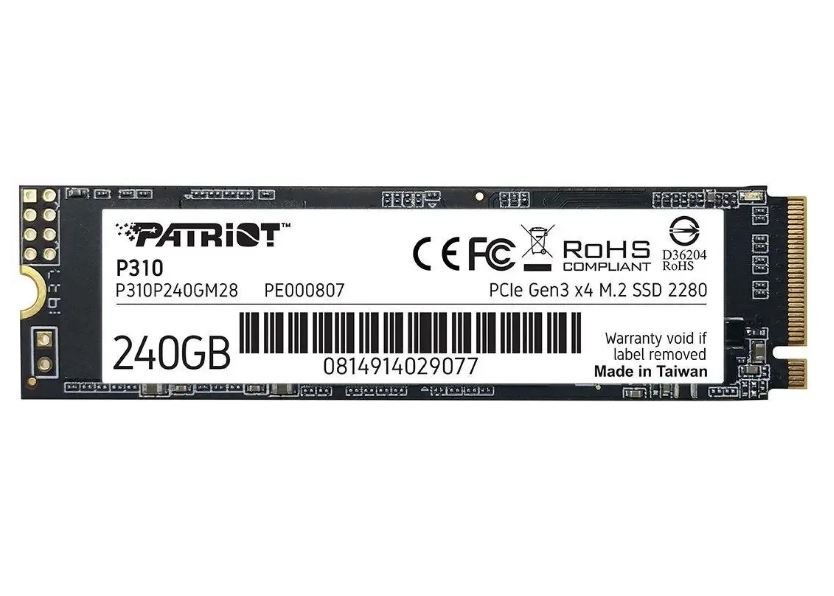 SSD накопитель Patriot 240Гб P310 P310P240GM28 M.2 2280 PCIe 3.0 x4 NVMe