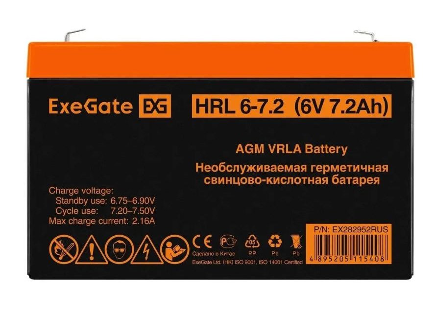 | Бренд: EXEGATE. Модель: EX282952. Описание: Свинцово-кислотные необслуживаемые аккумуляторы ExeGate серии HRL изготовлены по технологии AGM. Напряжение питания: 6 В. Емкость: 7.2 Ач. Клеммы: F1. Особенности: Корпус выполнен из пластика, не поддерживающего горение. Конструкция АКБ исключает утечку электролита. Система внутренней рекомбинации газа, нет долива воды. Соответствует UL. Эксплуатация АКБ допустима в любом положении, кроме перевернутого верх дном. Двойная герметизация клейм. Материал корпуса: ABS. Размеры (ШхВхГ): 34 х 100 х 151 мм. Вес товара: 1.16 кг. |