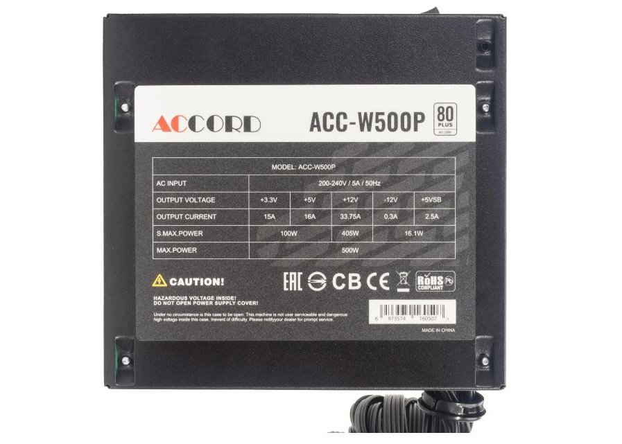 | Описание | Бренд: ACCORD, Модель: ACC-W500P, Форм-фактор: ATX, Версия ATX: 12V v2.4, Производительность (КПД): 80 %, Сертифицирован в стандарте: 80 PLUS WHITE, Тип системы охлаждения: активная, Минимальное входное напряжение: 200 В, Максимальное входное напряжение: 240 В, Цвет: черный, Питание процессора: 4+4 pin, Питание материнской платы: 20+4 pin, Длина линий питания МП: 500 мм, Длина линий питания видеокарты: 550 мм, Длина линий питания процессора: 600 мм, Питание видеокарты: 2х(6+2) pin, Разъемы Peripheral (Molex): 2 шт, Разъемы SATA: 6 шт, Размер вентилятора(ов): 120мм, Количество вентиляторов: один, Сетевой кабель: отсутствует, Защита от коротких замыканий (SCP): есть, Защита от повышения напряжения (OVP): Защита от повышения напряжения (OVP): есть, Защита от понижения напряжения (UVP): есть, Другие функции защиты: OPP |