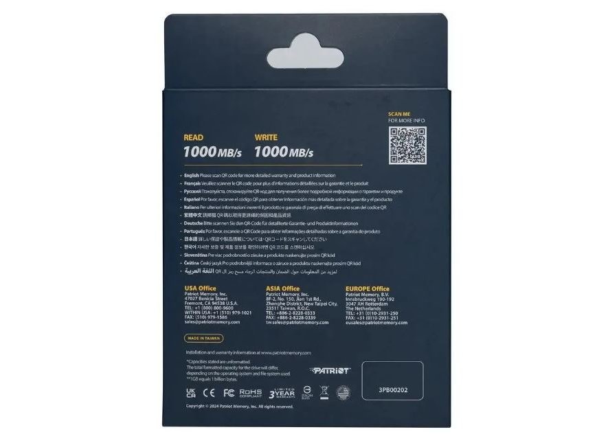 | Обмен информацией | Максимальная скорость записи (Мбайт/с): 1000 МБ/с, Максимальная скорость чтения (Мбайт/с): 1000 МБ/с |