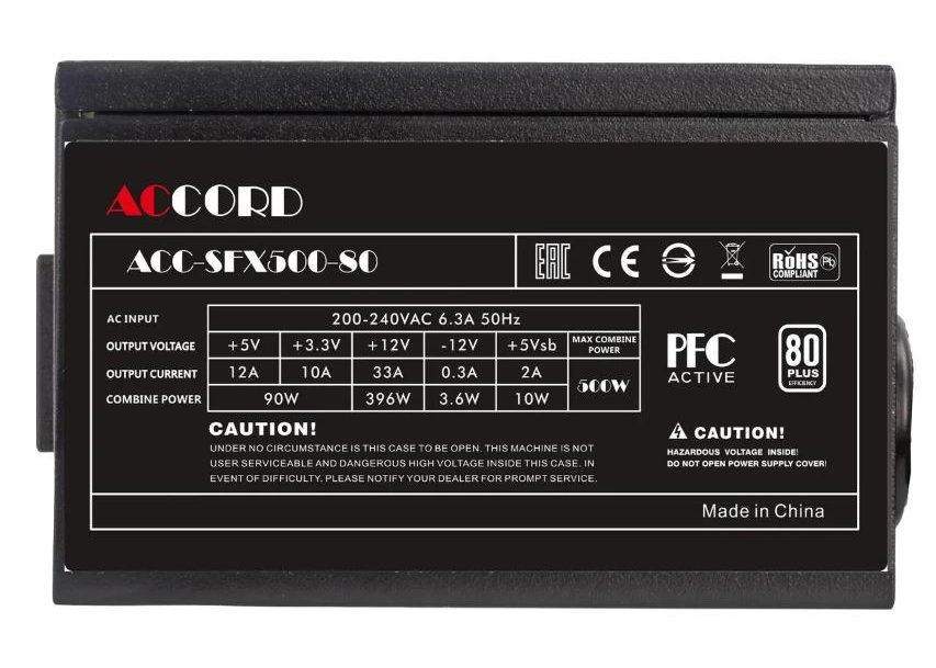 | Описание | Бренд: ACCORD, Модель: ACC-SFX500-80, Форм-фактор: SFX, Версия ATX: 12V v2.31, Активный PFC: есть, Цвет: черный, Питание процессора: 4+4 pin, Питание материнской платы: 24 pin, Питание видеокарты: 6+2 pin, Разъемы Peripheral (Molex): 2 шт, Разъемы SATA: 3 шт, Размер вентилятора(ов): 80мм, Количество вентиляторов: один, Сетевой кабель: в комплекте |