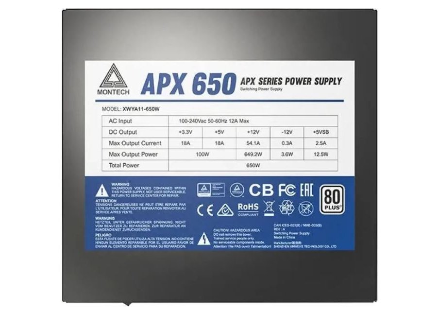 | Описание | Бренд: MONTECH, Модель: APX 650, Форм-фактор: ATX, Активный PFC: есть, Сертифицирован в стандарте: 80 PLUS WHITE, Тип системы охлаждения: активная, Минимальное входное напряжение: 100 В, Максимальное входное напряжение: 240 В, Цвет: черный, Питание процессора: 4+4 pin, Питание материнской платы: 20+4 pin, Питание видеокарты: 2х(6+2) pin, Разъемы Peripheral (Molex): 3 шт, Разъемы SATA: 6 шт, Размер вентилятора(ов): 120мм, Количество вентиляторов: один, Подшипник вентилятора(ов): гидродинамический, Сетевой кабель: в комплекте, Защита от коротких замыканий (SCP): есть, Защита от повышения напряжения (OVP): Защита от повышения напряжения (OVP): есть, Защита от понижения напряжения (UVP): есть, Защита от перегрузки любого из выходов БП (OCP): есть, Другие функции защиты: OPP, OTP |