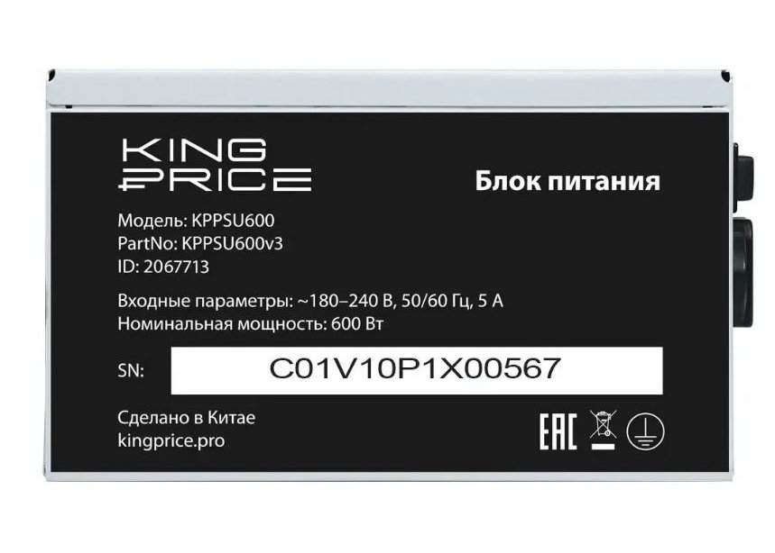 | Описание | Бренд: KINGPRICE, Модель: KPPSU600V3, Форм-фактор: ATX, Версия ATX: 12V v2.31, Производительность (КПД): 78 %, Тип системы охлаждения: активная, Наработка на отказ (MTBF): 100000 ч, Минимальное входное напряжение: 180 В, Максимальное входное напряжение: 240 В, Цвет: серый, Питание процессора: 4+4 pin, Питание материнской платы: 20+4 pin, Длина линий питания МП: 450 мм, Длина линий питания видеокарты: 400 мм, Длина линий питания процессора: 550 мм, Питание видеокарты: 6+2 pin, Разъемы Peripheral (Molex): 2 шт, Разъемы SATA: 4 шт, Размер вентилятора(ов): 120мм, Количество вентиляторов: Один , Подшипник вентилятора(ов): гидродинамический, Терморегулятор оборотов: есть, Сетевой кабель: в комплекте, Защита от коротких замыканий (SCP): есть, Защита от повышения напряжения (OVP): Защита от повышения напряжения (OVP): есть, Защита от понижения напряжения (UVP): есть |