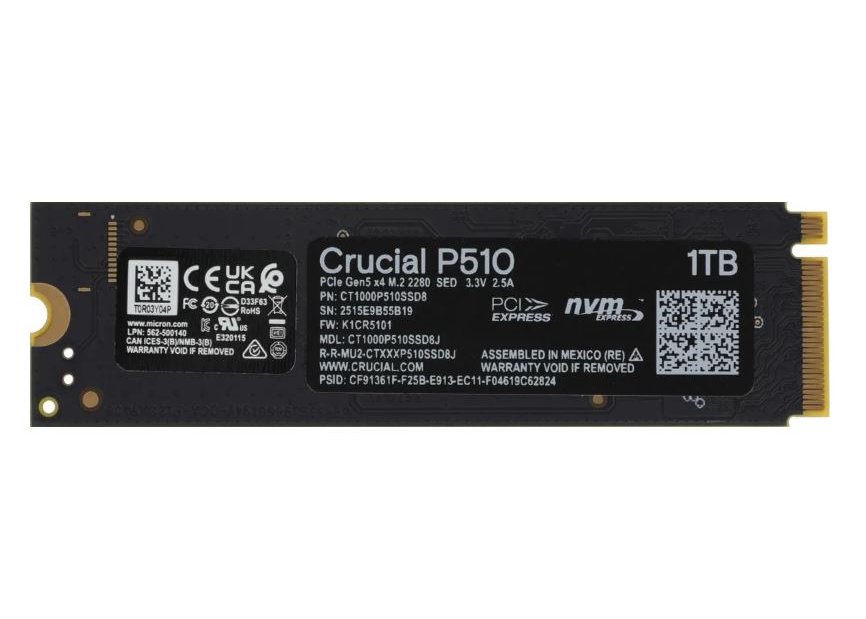 | Прочее | Бренд: CRUCIAL, Предназначен: для ПК, для ноутбука, Тип жесткого диска: SSD, Тип памяти NAND: TLC, Структура памяти NAND: 3D, Поддержка NVMe: есть, Ключ M.2 разъема: M, Ресурс TBW: 600 ТБ, Для геймеров: ДА |