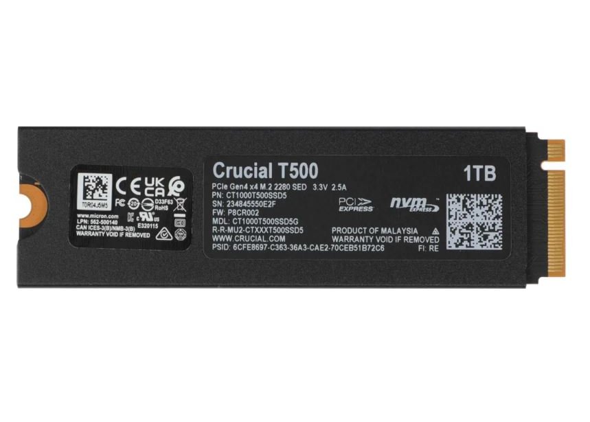 | Прочее | Бренд: CRUCIAL, Предназначен: для ПК, Тип жесткого диска: SSD, Тип памяти NAND: TLC, Структура памяти NAND: 3D, Поддержка NVMe: есть, Ключ M.2 разъема: M, Ресурс TBW: 600 ТБ, Радиатор охлаждения: есть, Для геймеров: ДА |