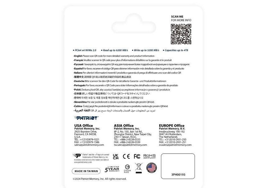 | Прочее | Бренд: PATRIOT, Предназначен: для ПК, для ноутбука, Тип жесткого диска: SSD, Структура памяти NAND: 3D, Поддержка NVMe: есть, Ключ M.2 разъема: M, Ресурс TBW: 640 ТБ, Особенности: скорость последовательного чтения на PS5 достигает 6000 МБ/с, графеновый радиатор, Совместимость с PS5: да, Для геймеров: ДА |