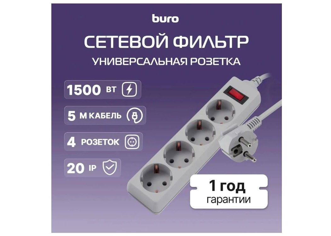 | Кол-во розеток | 4 заземлённых розеток (евростандарт) |