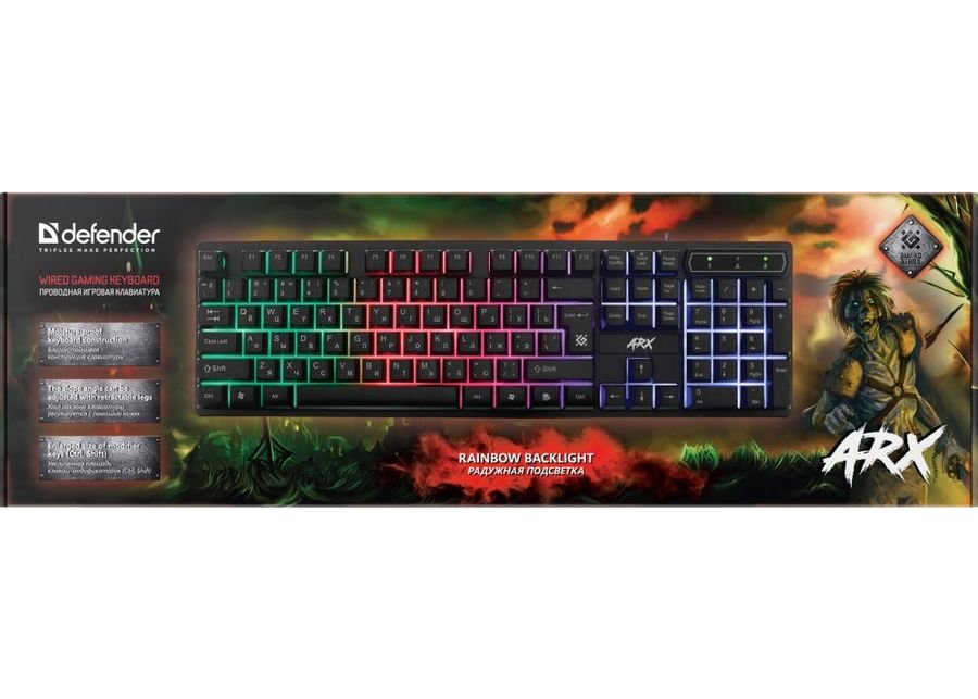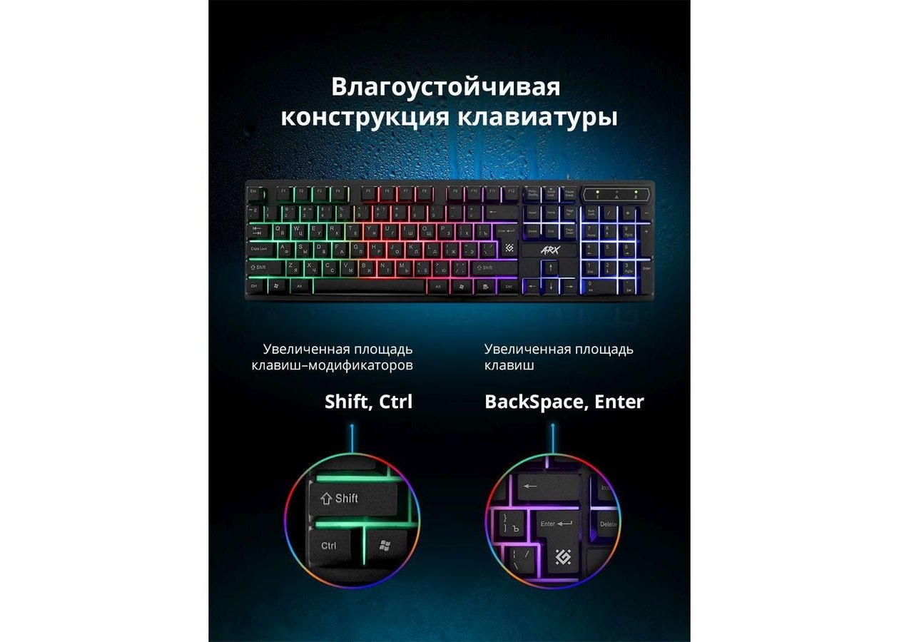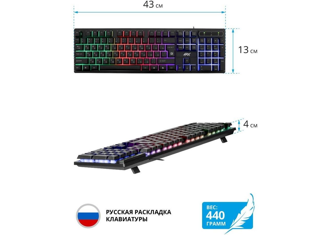 | Описание | Интерфейс: USB, Тип соединения: проводная, Длина кабеля: 1.5 м, Подсветка клавиш: есть, Тип подсветки: многоцветная, Для геймеров: да, Обычная/тонкая: обычная, Защита от попадания жидкостей: присутствует, Особенности: Радужная подсветка. Возможность выключения подсветки. Увеличенная площадь клавиш-модификаторов (Ctrl, Shift), клавиш Enter и BackSpace. Угол наклона клавиатуры регулируется с помощью ножек., Цвет: черный, Размеры клавиатуры (ШхВхТ): 445 х 27 х 133 мм, Габариты упаковки (ед) ДхШхВ: 0.46x0.15x0.04 м, Вес: 0.83 кг, Вес упаковки (ед): 0.63 кг |