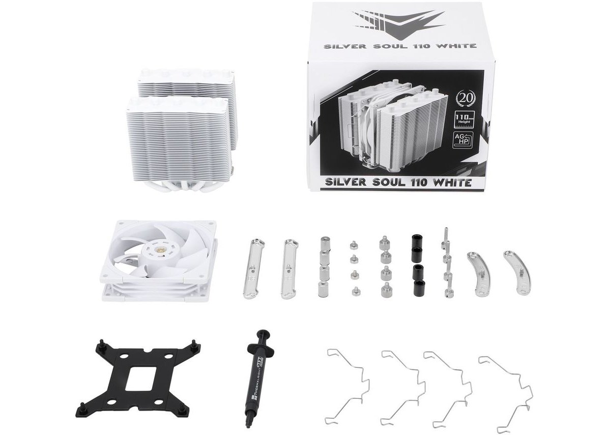 | Описание | Бренд: THERMALRIGHT, Модель: Silver Soul 110 White, Тип охлаждения: активное воздушное, Количество вентиляторов: 1, Направление выдува: параллельно МП, Тип подшипника: гидродинамический, Fluid Dynamic Bearing, Предназначено для ЦП: да, Совместимость Socket 2011: да, Совместимость Socket 1156: да, Совместимость Socket 1155: да, Совместимость Socket 1151: да, Совместимость Socket 1150: да, Совместимость Socket 1200: да, Совместимость Socket 1700: да, Совместимость SocketAM4: да, Совместимость Socket 2011-v3: да, Совместимость SocketAM5: ДА, Совместимость Socket 2066: да, Тип крепления к материнской плате: на винтах + скоба, Основание кулера: цельное, материал - медь, Использование тепловых трубок: с тепловыми трубками, Тепловые трубки: 5 шт с диаметром по 6 мм, Материал радиатора: алюминий+медь, Вес: 400 грамм |