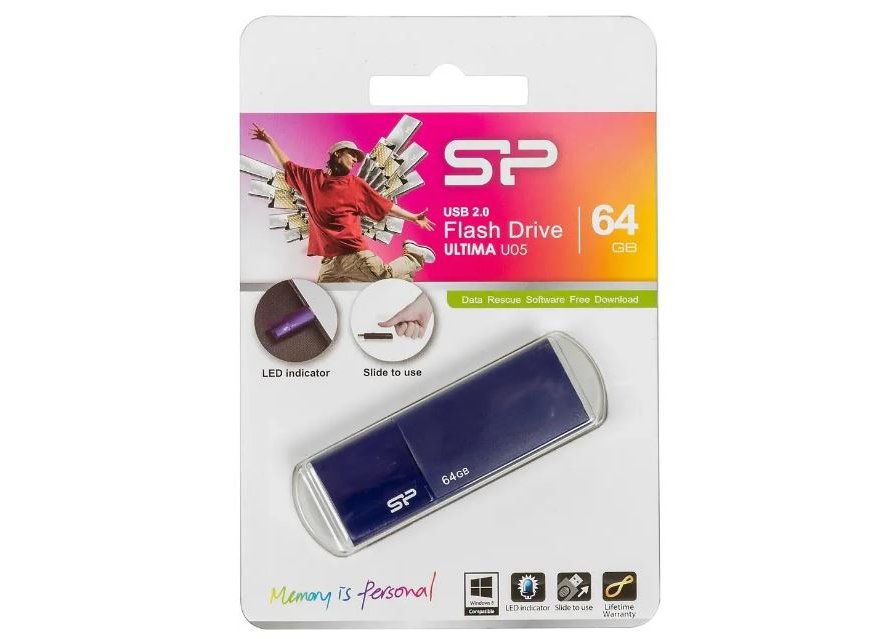 Флешка USB Silicon Power 64Гб Ultima U05 (SP064GBUF2U05V1D) USB2.0 синий