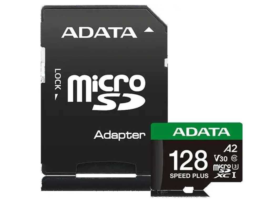 Карта памяти MicroSDXC ADATA 128 Гб Speed Plus (UD128GUI3V30A2SP-RA1) Class 10 UHS-I U3, переходник SD