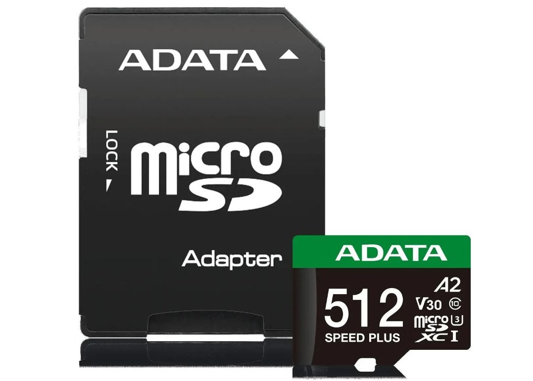 Карта памяти MicroSDXC ADATA 512 Гб Speed Plus (UD512GUI3V30A2SP-RA1) Class 10 UHS-I U3, переходник SD