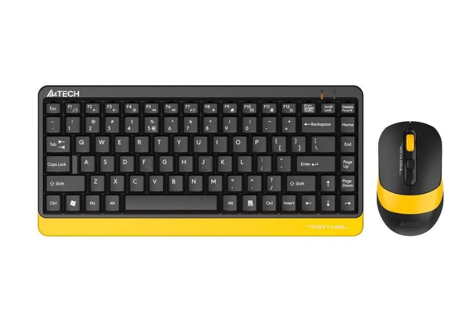 Комплект A4Tech Fstyler FG1110 Wireless клавиатура+мышь, беспроводная, защита от воды USB черно-жёлтый