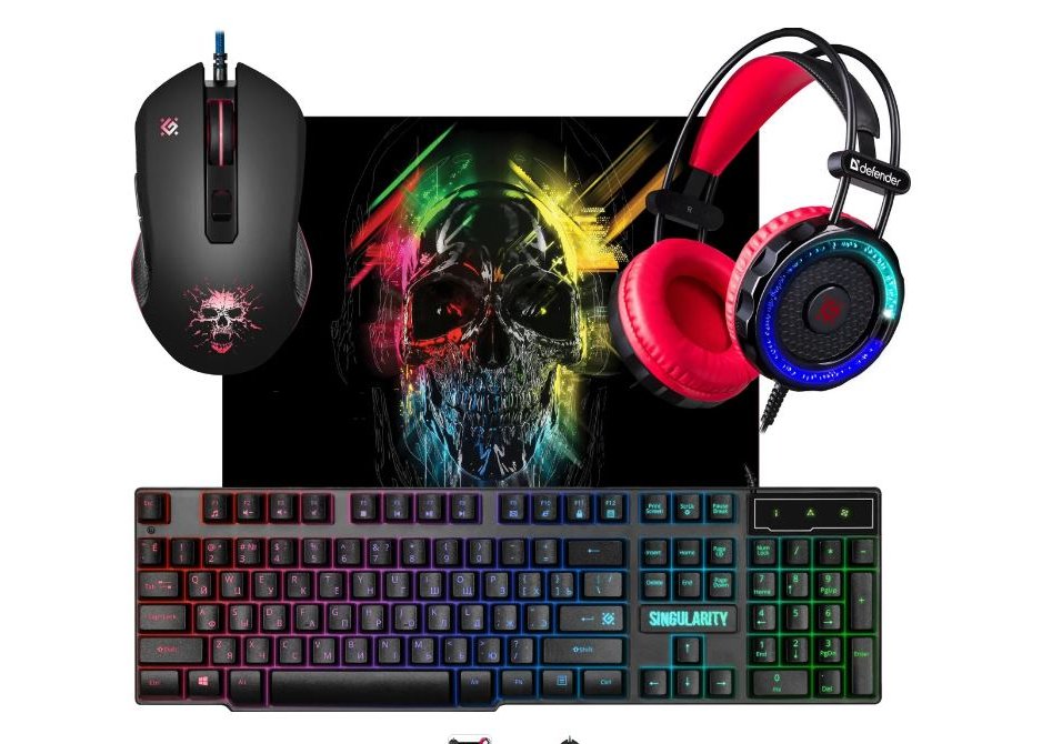 Комплект Defender MKP-118 набор игровой клавиатура+мышь+коврик+гарнитура, подсветка, USB черный