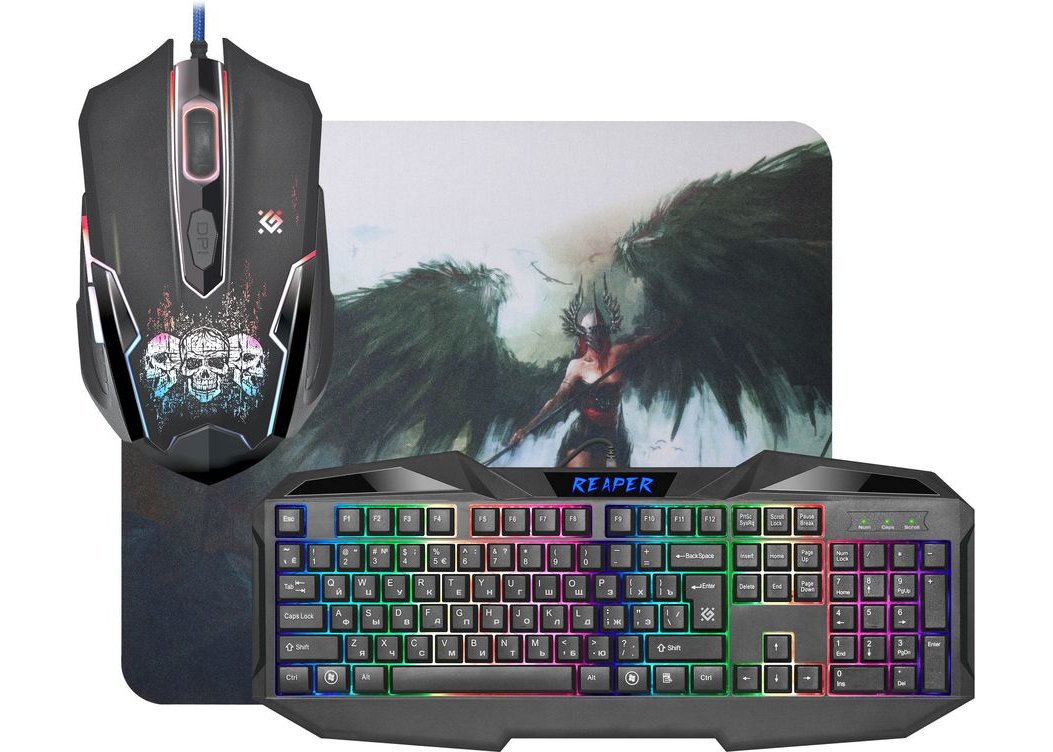 Комплект Defender Reaper MKP-018 набор игровой клавиатура+мышь, подсветка, коврик, USB черный