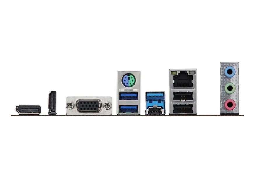 | Внешние разъемы | 1 x PS/2 порт для клавиатуры или мышки, 1 x D-Sub, 1 x HDMI, 1 x DisplayPort 1.4, 1 x USB 3.2 Gen1 Type-C, 3 x USB 3.2 Gen1 Type-A Ports, 2 x USB 2.0, 1 x RJ-45 LAN, Разъёмы HD-аудио: Линейный вход / Передние динамики / Микрофон |