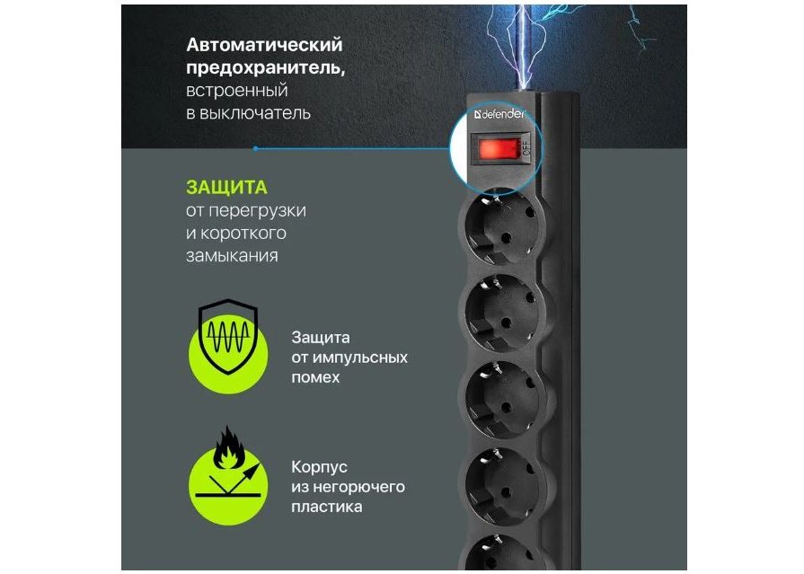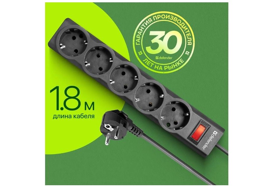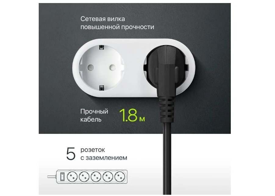 | Кол-во розеток | 5 заземлённых розеток (евростандарт) |