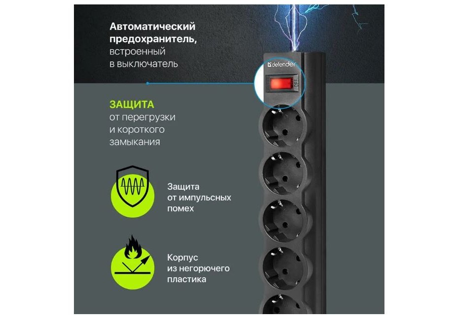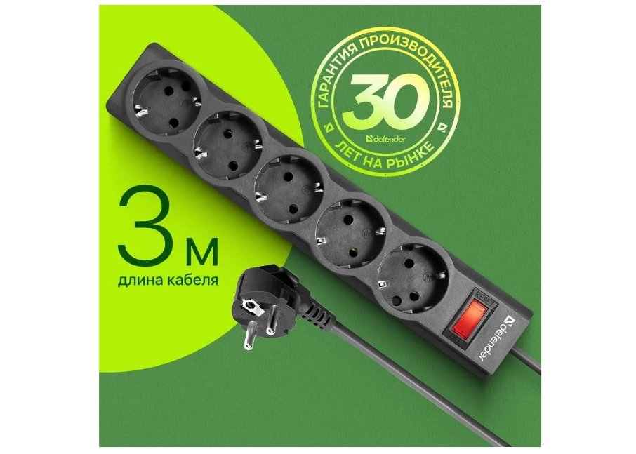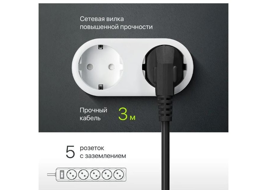 | Кол-во розеток | 5 заземлённых розеток (евростандарт) |