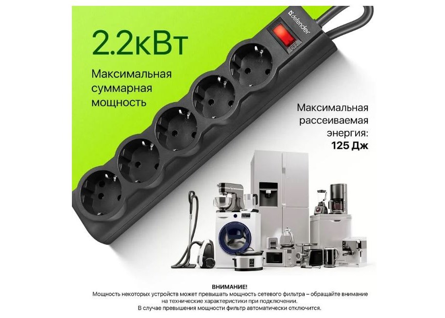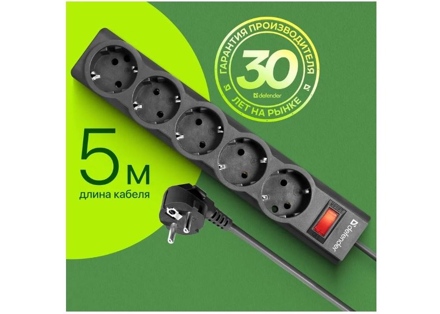 | Кол-во розеток | 5 заземлённых розеток (евростандарт) |