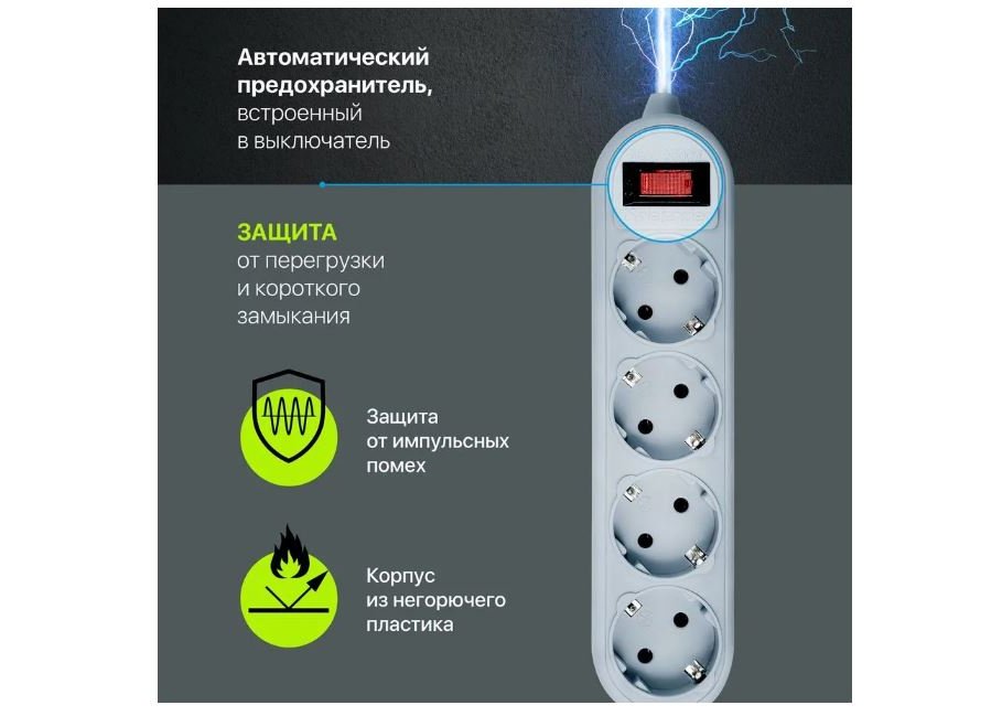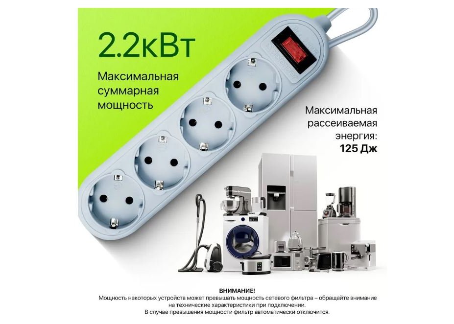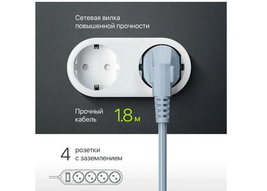 | Кол-во розеток | 4 заземлённых розеток (евростандарт) |