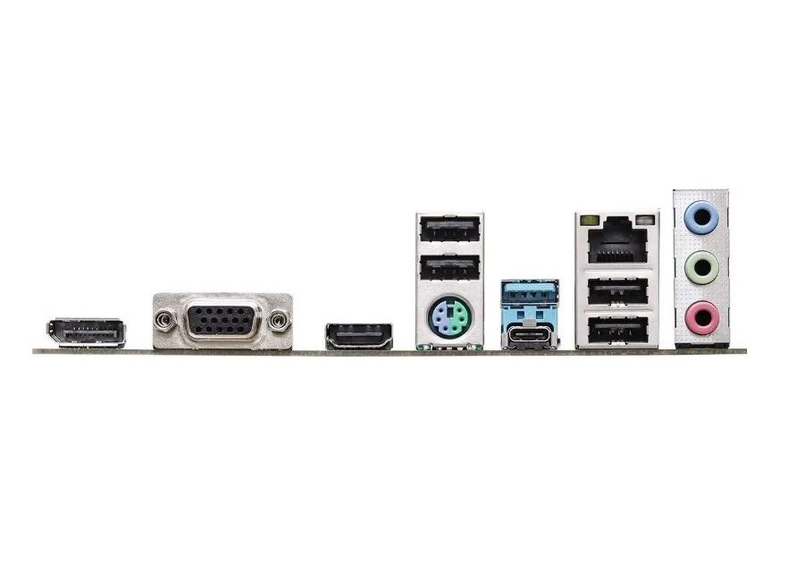 | Внешние разъемы | 1 x PS/2 порт для клавиатуры и мышки, - 1 x D-Sub, - 1 x HDMI, - 1 x DisplayPort 1.4, - 1 x USB 3.2 Gen1 Type-C, - 1 x USB 3.2 Gen1 Type-A Port, - 4 x USB 2.0, - 1 x RJ-45 LAN, - Разъёмы HD-аудио: Линейный вход / Передние динамики / Микрофон |