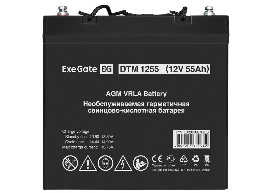 | Бренд: EXEGATE. Модель: EX285667. Описание: Свинцово-кислотные необслуживаемые аккумуляторы ExeGate серии DTM изготовлены по технологии AGM. Напряжение питания: 12 В. Емкость: 55 Ач. Клеммы: Болт М6. Особенности: Корпус выполнен из пластика, не поддерживающего горение. Конструкция АКБ исключает утечку электролита. Система внутренней рекомбинации газа, не требует долива воды. Нет ограничений на перевозку любым видом транспорта. Эксплуатация АКБ допустима в любом положении, кроме перевернутого верх дном. Материал корпуса: ABS. Размеры (ШхВхГ): 138 х 208 х 229 мм. Вес товара: 16.4 кг. |