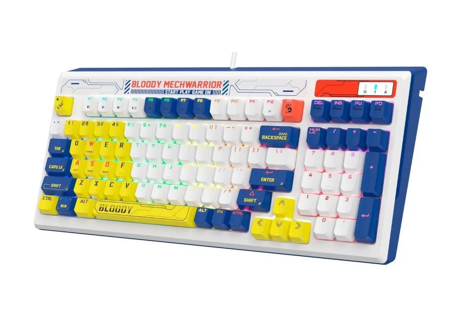 | Описание | Модель: Bloody B950, Бренд: A4TECH, Интерфейс: USB, Тип соединения: проводная, Длина кабеля: 1.8 м, Подсветка клавиш: есть, Тип подсветки: RGB, Для геймеров: да, Обычная/тонкая: обычная, Защита от попадания жидкостей: присутствует, Цвет: белый и синий, белый, желтый, Размеры клавиатуры (ШхВхТ): 395 х 39 х 174 мм, Габариты упаковки (ед) ДхШхВ: 0.45x0.23x0.057 м, Вес упаковки (ед): 1.43 кг |