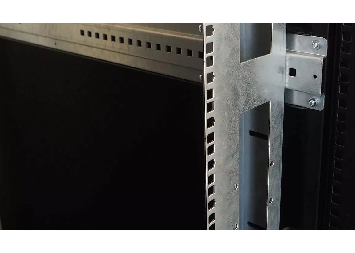 | Шкаф серверный ШТК-М предназначен для размещения телекоммуникационного оборудования, организации центров хранения и обработки данных. Класс защиты– IP20. Шкаф имеет разборную каркасную конструкцию. Легок в сборке. Состоит из основания, крыши и двух сварных рам, соединенных комплектом швеллеров. На боковых элементах рамы выполнена дополнительная перфорацию под закладные гайки. Шкаф стандартно комплектуется одинарными или двойными перфорированными дверями с ригельными замками и боковыми стенками. Стенка шкафов глубиной 600 и 800 мм состоит из одного легкосъемного бокового элемента с точечными замками, а шкафов глубиной 1000 и 1200 мм – из двух. Одинарные двери имеют как правую, так и левую навеску, угол открытия 180 градусов. Усиленная конструкция допускает распределенную статическую нагрузку до 1200 кг. В крышу и основание шкафов глубиной 600 и 800 мм возможна установка двух вентиляторных модулей серии R-FAN, а шкафов глубиной 1000 и 1200 мм – трех. Также в этих элементах имеется дополнительная перфорация и отверстия под кабельный ввод 212х110 мм и/или 422х55 мм, с возможностью установки щёточных вводов серии КВ-Щ.. Предусмотрена установка винтовых опор (ножек) позволяющих компенсировать неровности пола (входят в комплект поставки). Возможна установка поворотных роликов различной нагрузочной способности (в комплект поставки не входят). Доступ для монтажа, коммутации и обслуживания оборудования возможен с четырех сторон: через боковые легкосъемные стенки, переднюю и заднюю дверь. В базовой комплектации шкаф имеет четыре оцинкованные вертикальные направляющие, регулируемые по глубине. Предусмотрена система заземления (провода для заземления всех деталей шкафа входят в комплект поставки). Покрытие – краска полимерно-порошковая, шагрень, с предварительным фосфатированием. Шкафы поставляются в разобранном виде и компактно упаковываются в три транспортных места. |