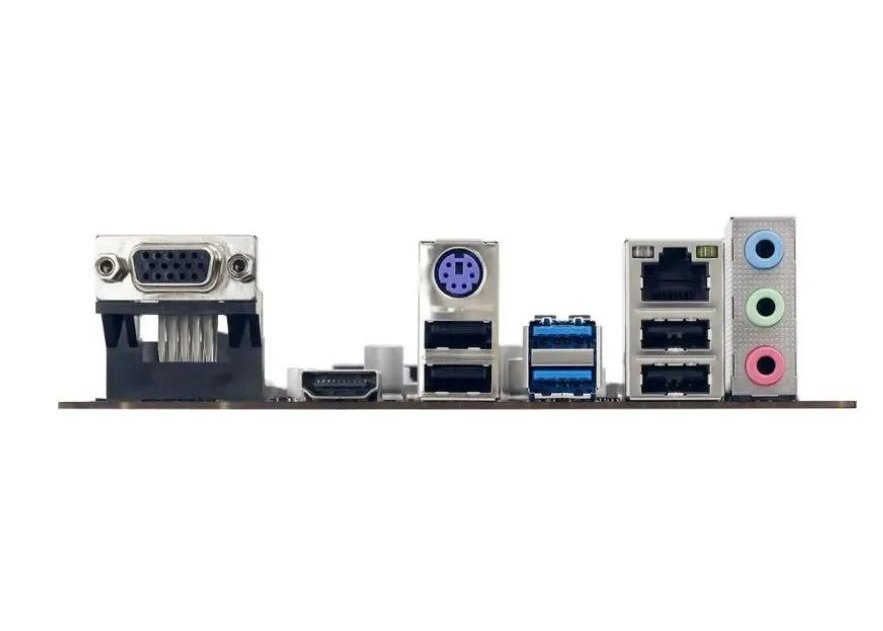 | Внешние разъемы | 1 порт PS/2 для клавиатуры/мыши, 1 х HDMI, 1 порт VGA, 2 порта USB 3.2 (Gen 1), 4 порта USB 2.0, 1 порт локальной сети, 3 аудиоразъема. |