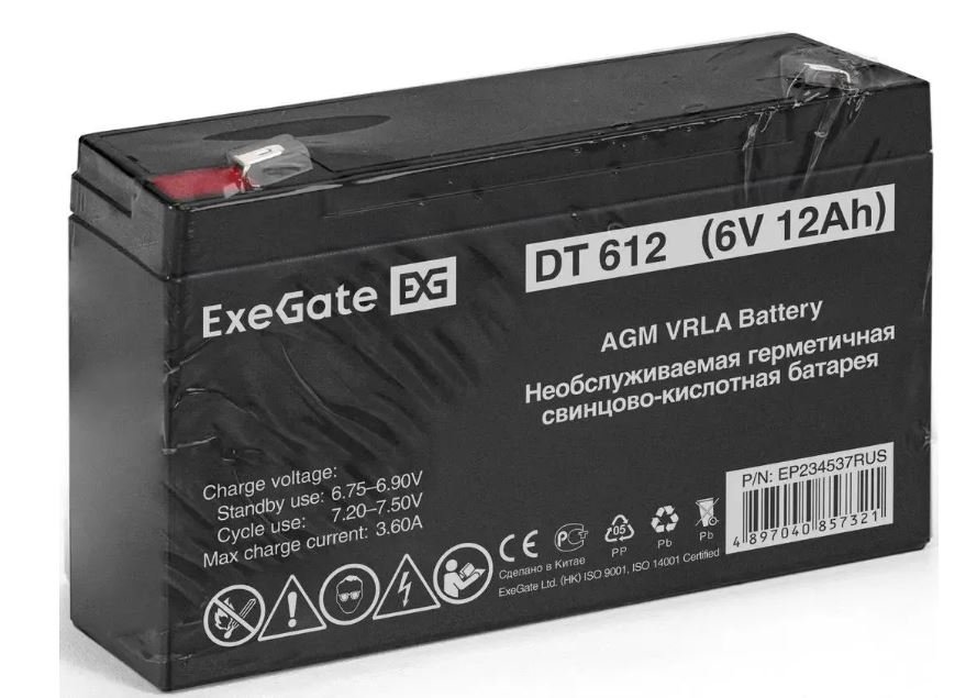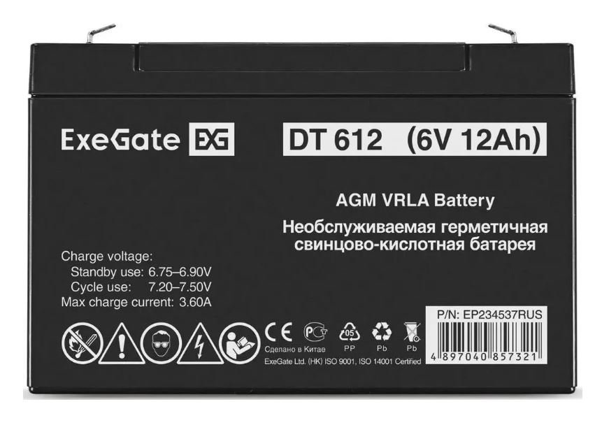 | Бренд: EXEGATE. Модель: EP234537. Напряжение питания: 6 В. Емкость: 12 Ач. Клеммы: F1. Описание: Свинцово-кислотные необслуживаемые аккумуляторы ExeGate серии DT изготовлены по технологии AGM. Особенности: Корпус выполнен из пластика, не поддерживающего горение. Система внутренней рекомбинации газа, не требует долива воды. Эксплуатация допустима в любом положении, кроме перевернутого верх дном. Легированные кальцием свинцовые пластины обеспечивают высокую плотность энергии. Материал корпуса: ABS. Размеры (ШхВхГ): 50 х 100 х 151 мм. Вес товара: 1.68 кг. |