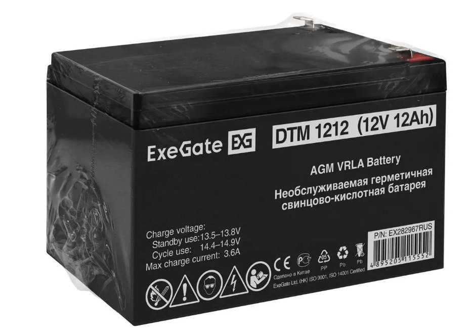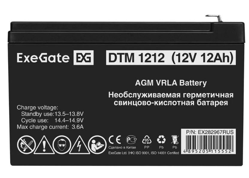 | Бренд: EXEGATE. Модель: EX282967. Напряжение питания: 12 В. Емкость: 12 Ач. Клеммы: F2. Описание: Свинцово-кислотные необслуживаемые аккумуляторы ExeGate серии DTM изготовлены по технологии AGM. Особенности: Корпус выполнен из пластика, не поддерживающего горение. Конструкция АКБ исключает утечку электролита. Система внутренней рекомбинации газа, не требует долива воды. Нет ограничений на перевозку любым видом транспорта. Эксплуатация АКБ допустима в любом положении, кроме перевернутого верх дном. Материал корпуса: ABS. Размеры (ШхВхГ): 98 х 101 х 151 мм. Габариты упаковки (ед) ДхШхВ: 0.15x0.093x0.1 м. Вес товара: 3.42 кг |