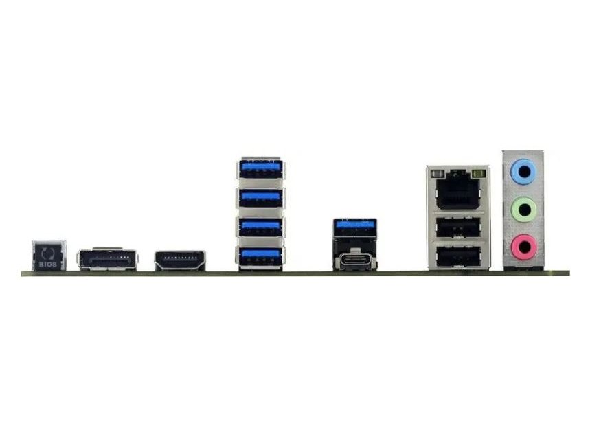 | Внешние разъемы | 1 порт HDMI (HDMI2.1), 1 порт DP (DP1.2), 1 порт USB 3.2 (Gen 2) типа C, 5 портов USB 3.2 (Gen 2), 2 порта USB 2.0, 1 порт локальной сети, 3 аудиоразъема, 1 кнопка обновления SMART BIOS, 1 USB-порт SMART BIOS, 2 порта антенны WIFI |
