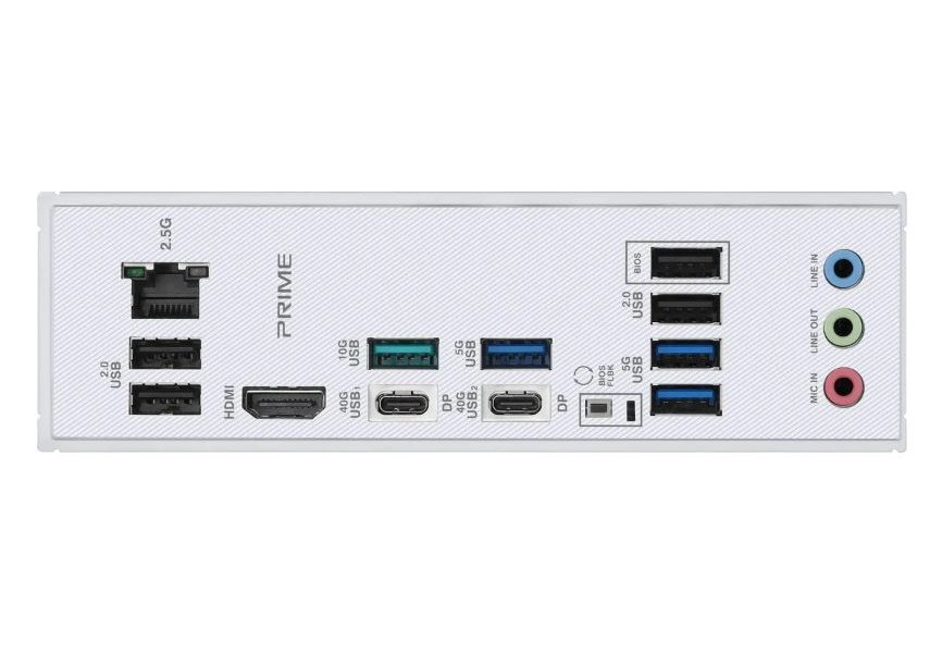 | Внешние разъемы | 2 х USB4 ® (40 Гбит/с) порты (2 порта USB Type-C ® ), 1 порт USB 10 Гбит/с (1 порт типа A), 3 порта USB 5 Гбит/с (3 порта Type-A), 4 порта USB 2.0 (4 порта Type-A), 1 х HDMI ™ порт, 1 порт Ethernet Realtek 2,5 Гбит/с, 3 аудиоразъема, 1 х BIOS FlashBack ™ кнопка. |