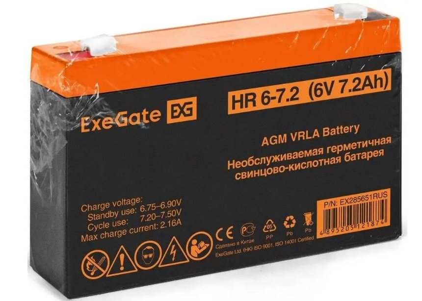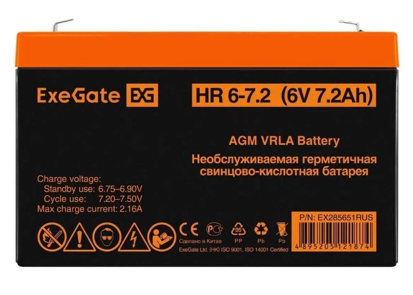 | Бренд: EXEGATE. Модель: EX285651. Напряжение питания: 6 В. Емкость: 7.2 Ач. Клеммы: F1. Описание: Свинцово-кислотные необслуживаемые аккумуляторы ExeGate серии HR изготовлены по технологии AGM. Горячая замена: НЕТ. Особенности: Корпус аккумулятора выполнен из пластика ABS UL94-HB, не поддерживающего горение. Полностью герметичная конструкция, исключающая утечку электролита. Система внутренней рекомбинации газа, нет необходимости в доливе воды. Материал корпуса: ABS. Размеры (ШхВхГ): 34 х 100 х 151 мм. Вес товара: 1.16 кг. |