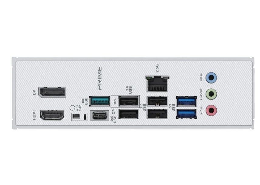 | Внешние разъемы | 1 порт USB 20 Гбит/с (1 порт USB Type-C ® с режимом DP Alt), 1 порт USB 10 Гбит/с (1 порт типа A), 2 порта USB 5 Гбит/с (2 порта Type-A), 4 порта USB 2.0 (4 порта Type-A), 1 DisplayPort, 1 х HDMI порт, 1 порт Ethernet Realtek 2,5 Гбит/с, 3 аудиоразъема, 1 кнопка BIOS FlashBack™. |