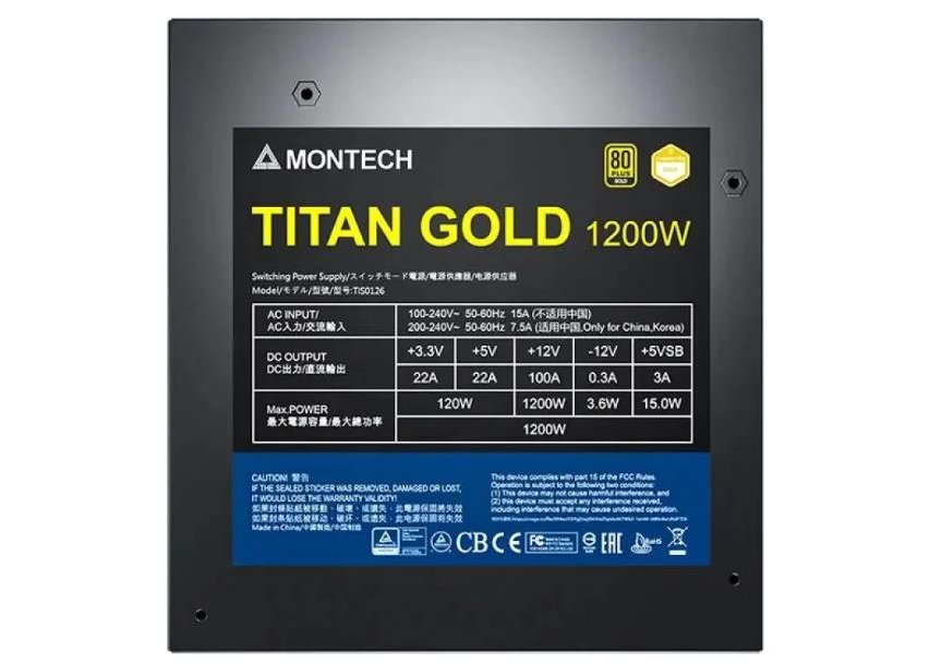 | Описание | Бренд: MONTECH, Модель: Titan Gold Gen.5, Форм-фактор: ATX, Версия ATX: 12V v3.0, Активный PFC: есть, Производительность (КПД): 87 %, Сертифицирован в стандарте: 80 PLUS GOLD, Тип системы охлаждения: активная, Минимальное входное напряжение: 100 В, Максимальное входное напряжение: 240 В, Цвет: черный, Питание процессора: 8+4+4 pin, Питание материнской платы: 20+4 pin, Наличие разъема 16 pin (12VHPWR): есть, Питание видеокарты: 5х(6+2) + 16 pin, Разъемы Peripheral (Molex): 4 шт, Разъемы SATA: 12 шт, Размер вентилятора(ов): 135мм, Количество вентиляторов: один, Подшипник вентилятора(ов): гидродинамический, Сетевой кабель: в комплекте, Отсоединяющиеся кабели: есть, Защита от коротких замыканий (SCP): есть, Защита от повышения напряжения (OVP): Защита от повышения напряжения (OVP): есть, Защита от понижения напряжения (UVP): есть, Защита от перегрузки любого из выходов БП (OCP): есть, Другие функции защиты: OPP, OTP |