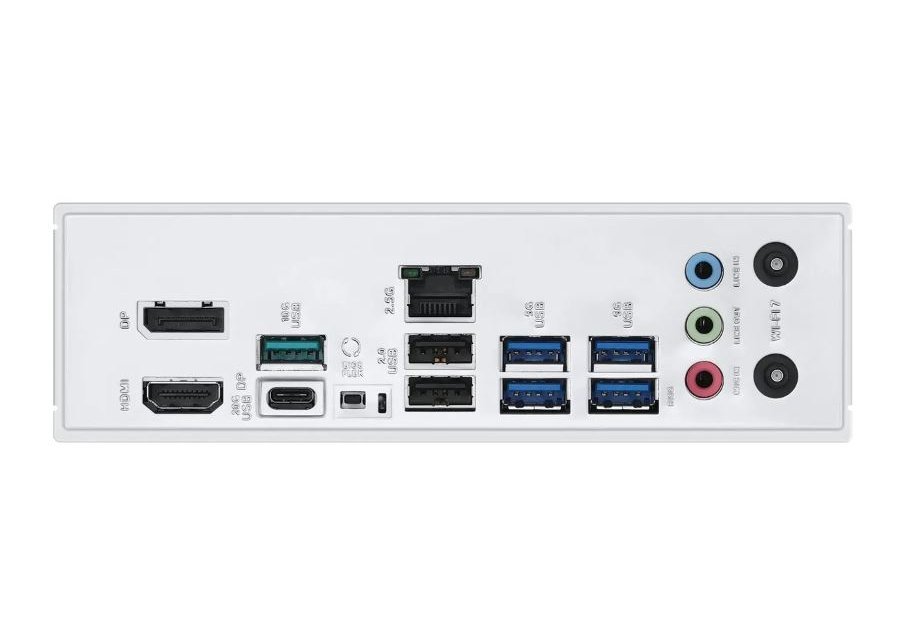 | Внешние разъемы | 1 порт USB 20 Гбит/с (1 порт USB Type-C) ® с режимом DP Alt), 1 порт USB 10 Гбит/с (1 тип A), 4 порта USB 5 Гбит/с (4 порта Type-A), 2 порта USB 2.0 (2 порта Type-A), 1 х DisplayPort, 1 порт HDMI™, 1 модуль Wi-Fi, 1 сетевой адаптер Realtek 2,5 Гбит/с, 3 аудиоразъема, 1 кнопка BIOS FlashBack™. |