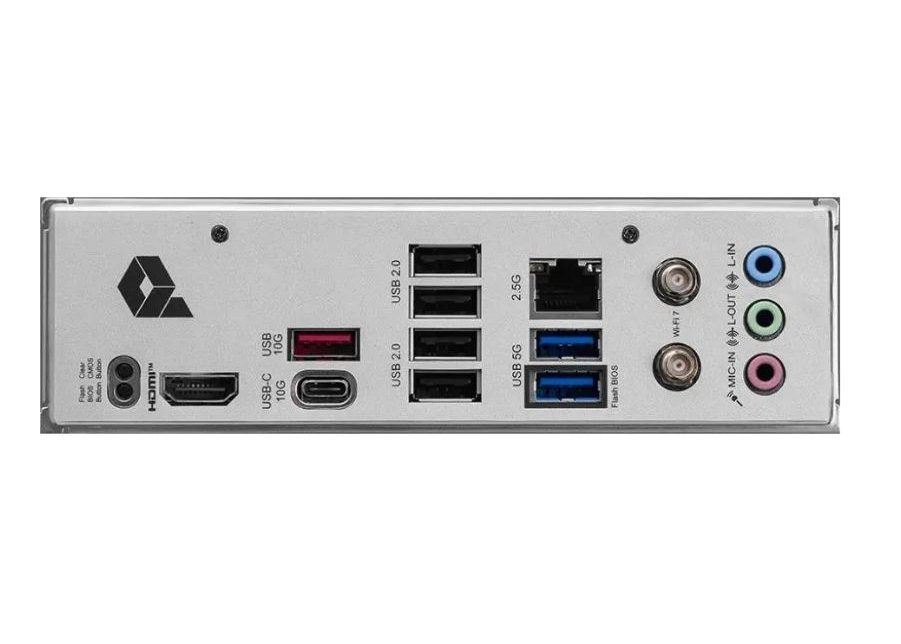 | Внешние разъемы | Кол-во внешних USB 2.0: 4, Кол-во внешних USB 5Gbps Type-A: 2, Кол-во внешних USB 10Gbps Type-A: 1, Кол-во внешних USB 10 Гбит/с Тип C): 1, Разъемов HDMI: 1, Wi-Fi / Bluetooth, 3 аудиоразъема, LAN: 1, Кнопка очистки CMOS, Кнопка прошивки BIOS |