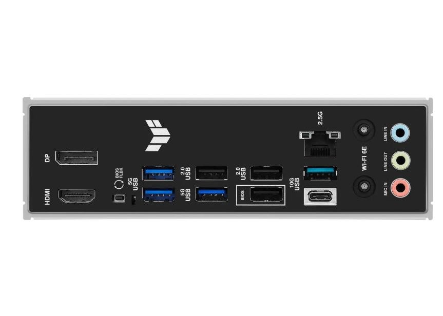 | Внешние разъемы | 2 порта USB 10 Гбит/с (1 тип A + 1 порт USB Type-C® ), 3 порта USB 5 Гбит/с (3 типа A), 3 порта USB 2.0 (3 типа A), 1 порт DisplayPort, 1 порт HDMI™, 1 модуль Wi-Fi, 1 порт Realtek 2.5 Гбит Ethernet, 3 аудиоразъема, 1 кнопка BIOS FlashBack™. |