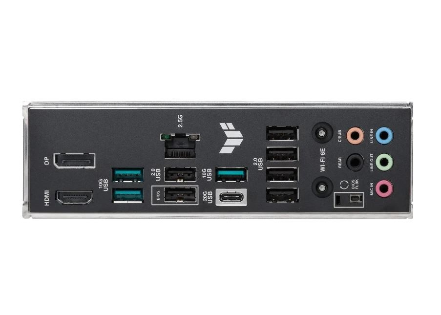 | Внешние разъемы | 1 порт USB 20 Гбит/с (1 порт USB Type-C® ), 3 порта USB 10 Гбит/с (3 порта Type-A), 6 портов USB 2.0 (6 портов Type-A), 1 порт DisplayPort, 1 порт HDMI™, 1 модуль Wi-Fi, 1 порт Realtek 2.5 Гбит Ethernet, 5 аудиоразъемов, 1 кнопка BIOS FlashBack™ |