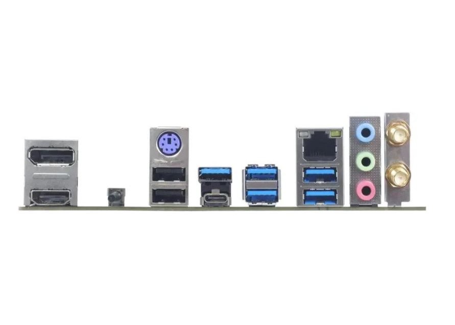 | Внешние разъемы | 2 порта для антенны WiFi, 1 порт PS/2 для клавиатуры/мыши, 1 x кнопка обновления BIOS, 1 порт HDMI® (HDMI®1.4), 1 x DP-порт (DP1.2), 1 порт USB 3.2 (Gen2) Type-C, 1 порт USB 3.2 (Gen2) Type-A, 4 порта USB 3.2 (Gen1) Type-A, 2 порта USB 2.0 Type-A, 1 порт LAN 2.5G, 3 аудиоразъема. |