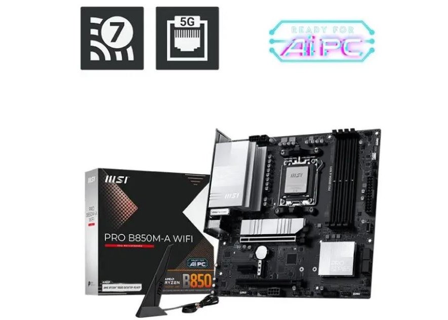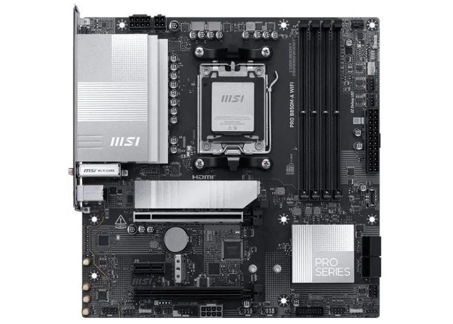 | Дополнительно | Бренд: MSI, Модель: PRO B850M-A WIFI, Тип системы охлаждения: пассивное, Тип поставки: Ret, Особенности: Для корректной работы функций Wi-Fi 7 требуется Windows 11 24H2., Подсветка материнской платы: ДА, Система подсветки: MSI Mystic Light, Вес упаковки (ед): 1.5 кг, Габариты упаковки (ед) ДхШхВ: 0.28x0.273x0.073 м |