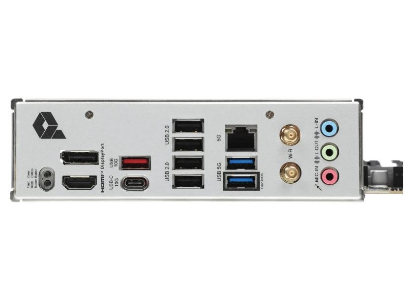 | Внешние разъемы | Кол-во внешних USB 2.0: 4, Кол-во внешних USB 5 Гбит/с Тип A: 2, Кол-во внешних USB 10 Гбит/с Тип A: 1, Кол-во внешних USB 10 Гбит/с Type-C: 1, Разъемов HDMI: 1, Разъемов Display Port: 1, Разъемов 5G LAN: 1, Wi-Fi/Bluetooth, 3 аудиоразъема, Кнопка очистки CMOS, Кнопка прошивки BIOS |