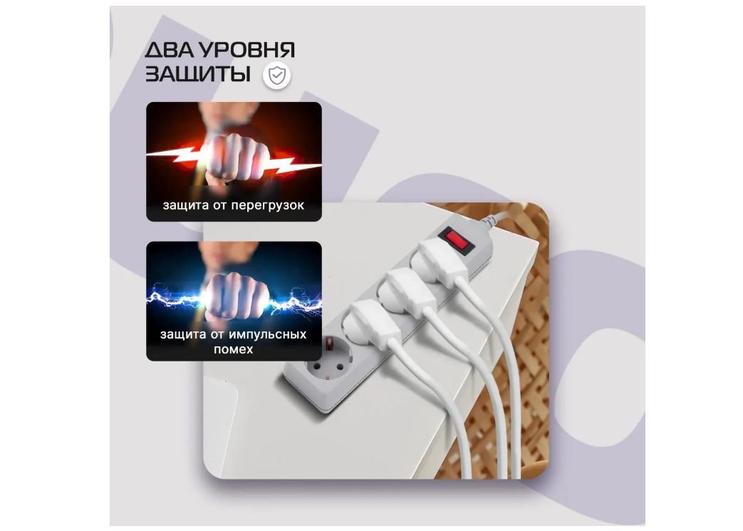 | Кол-во розеток | 4 заземлённых розеток (евростандарт) |