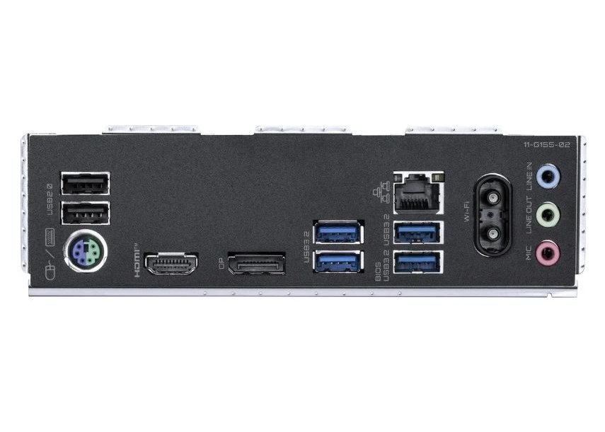 | Внешние разъемы | 2 порта USB 2.0/1.1, 1 порт PS/2 для клавиатуры/мыши, 1 порт HDMI, 1 порт DisplayPort, 4 порта USB 3.2 Gen 1, 1 порт RJ-45, 2 разъема для антенн, 3 аудиоразъема |