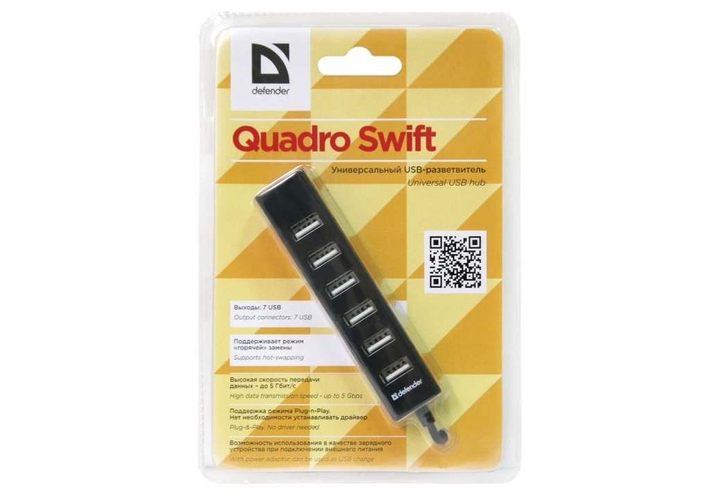 | USB-концентратор Defender Quadro Swift (83203), разъемов: 7. Для работы не требуются дополнительные драйверы. Поддерживает USB-накопители. Возможность заряжать аккумуляторы через USB-соединение даже при выключенном компьютере (при подключенном блоке питания). Токовая защита портов USB. |