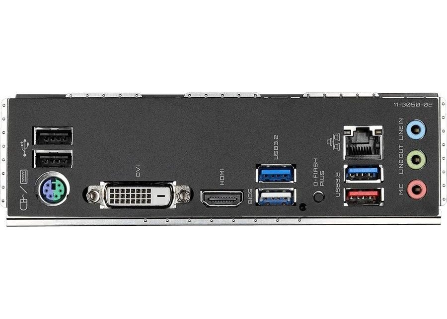 | Внешние разъемы | PS/2, 2 x USB 2.0, 3 x USB 3.2 Gen1, USB 3.2 Gen2, DVI, HDMI, 3 аудиоразъема |
