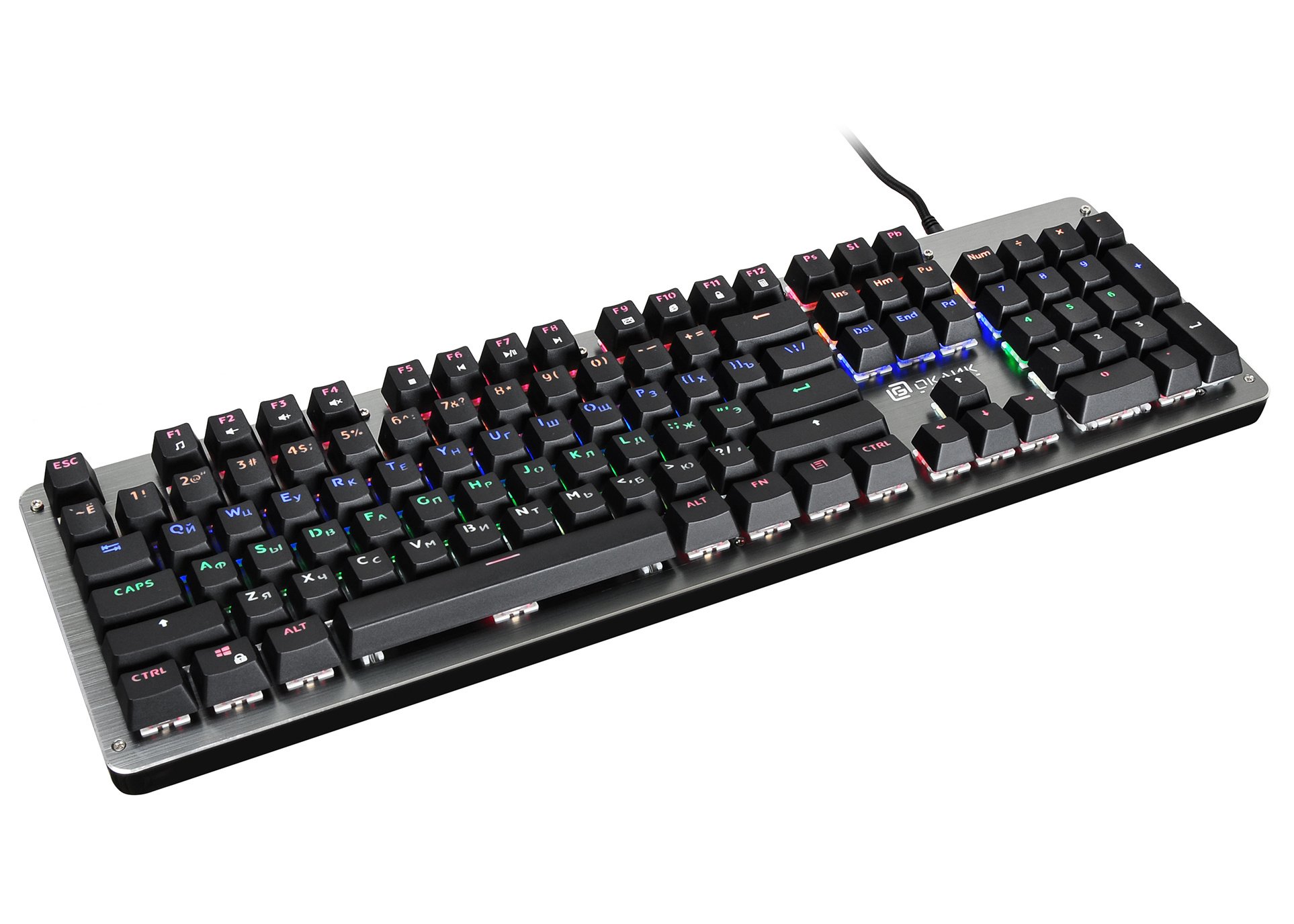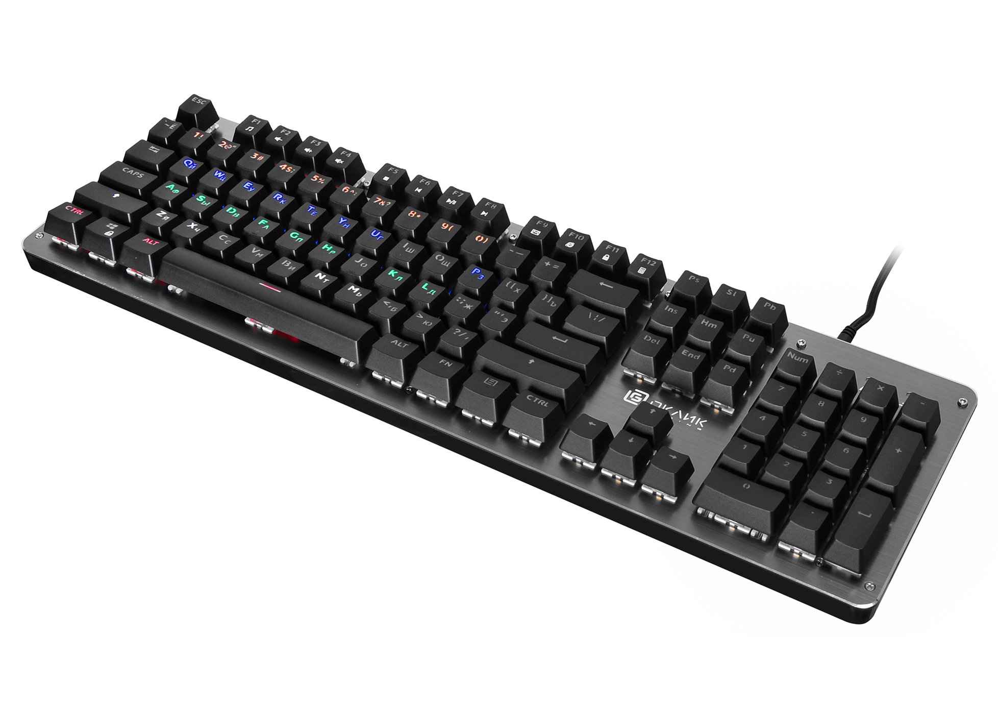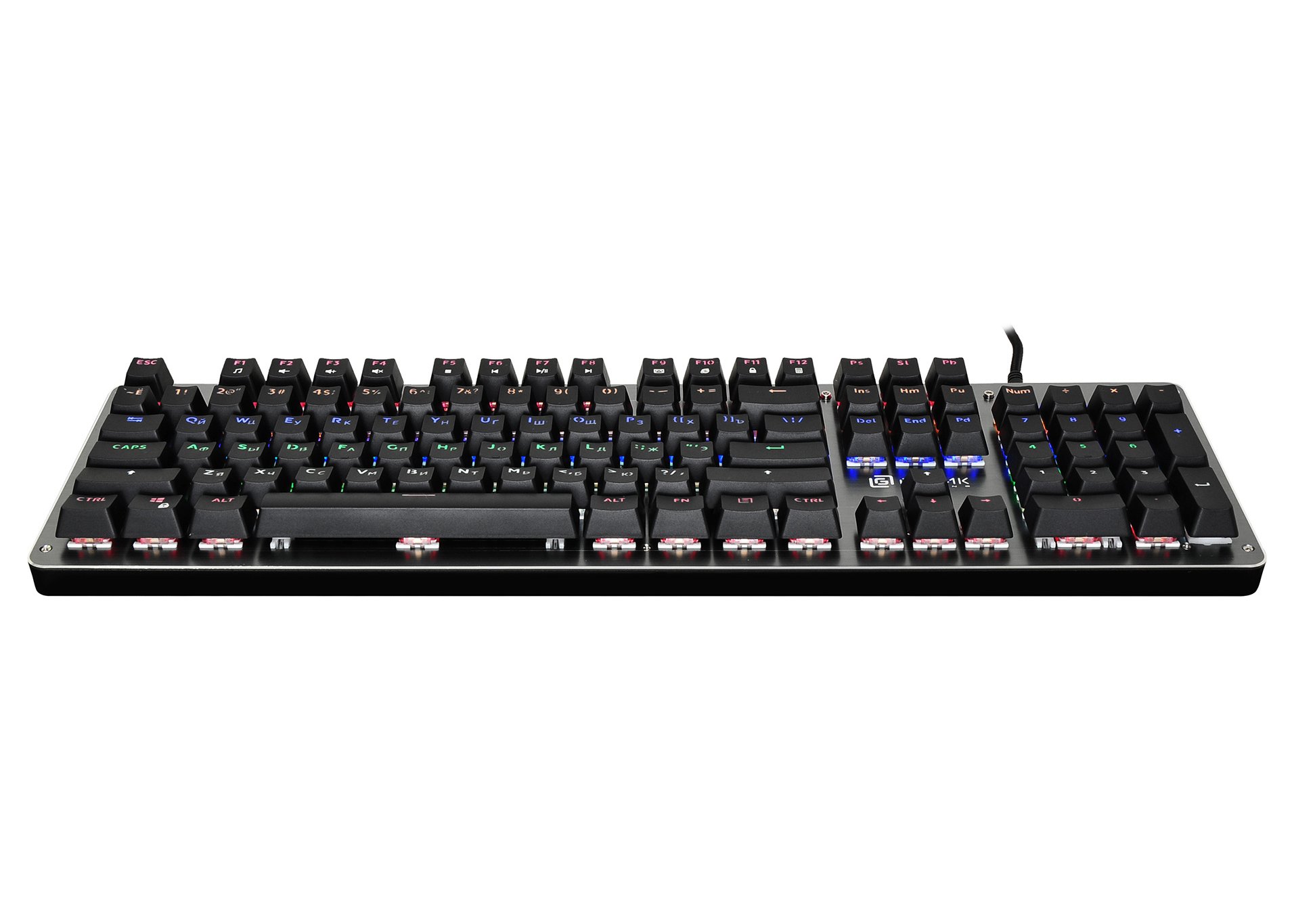 | Клавиатура | Механическая: да, Тип механических переключателей: Blue, Дизайн клавиш: квадратные, Цвет английских букв: прозрачный, Цвет русских букв: прозрачный, Дополнительные интернет-клавиши: есть, Материал корпуса: пластик/металл |