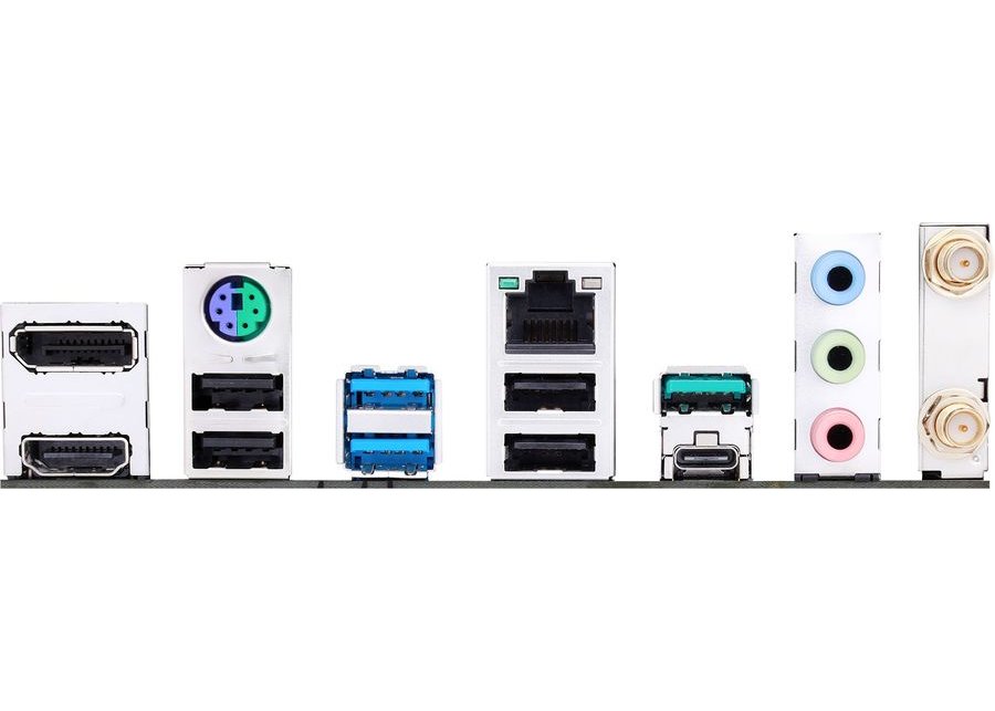 | Внешние разъемы | HDMI, DisplayPort, PS/2 (клавиатура/мышь), LAN RJ-45, USB 2.0 Type-A x 4, USB 3.2 Gen2x2 Type-C, USB 3.2 Gen1 Type-A x 2, USB 3.2 Gen2 Type-A, 3 аудиоразъема, 1х Wi-Fi |